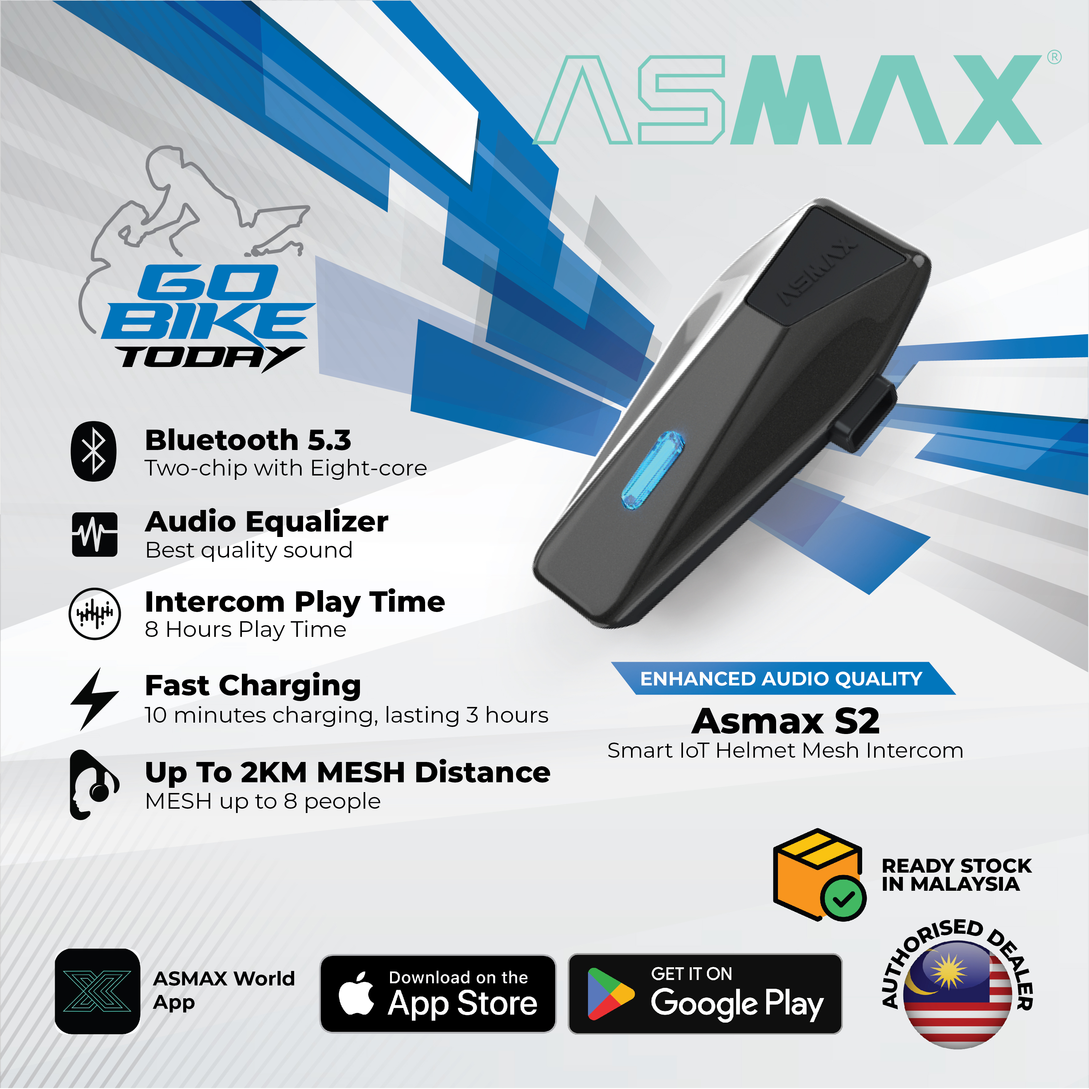 ASMAX MESH DEVICE HELMET INTERCOM - S2 [MCMC APPROVED]