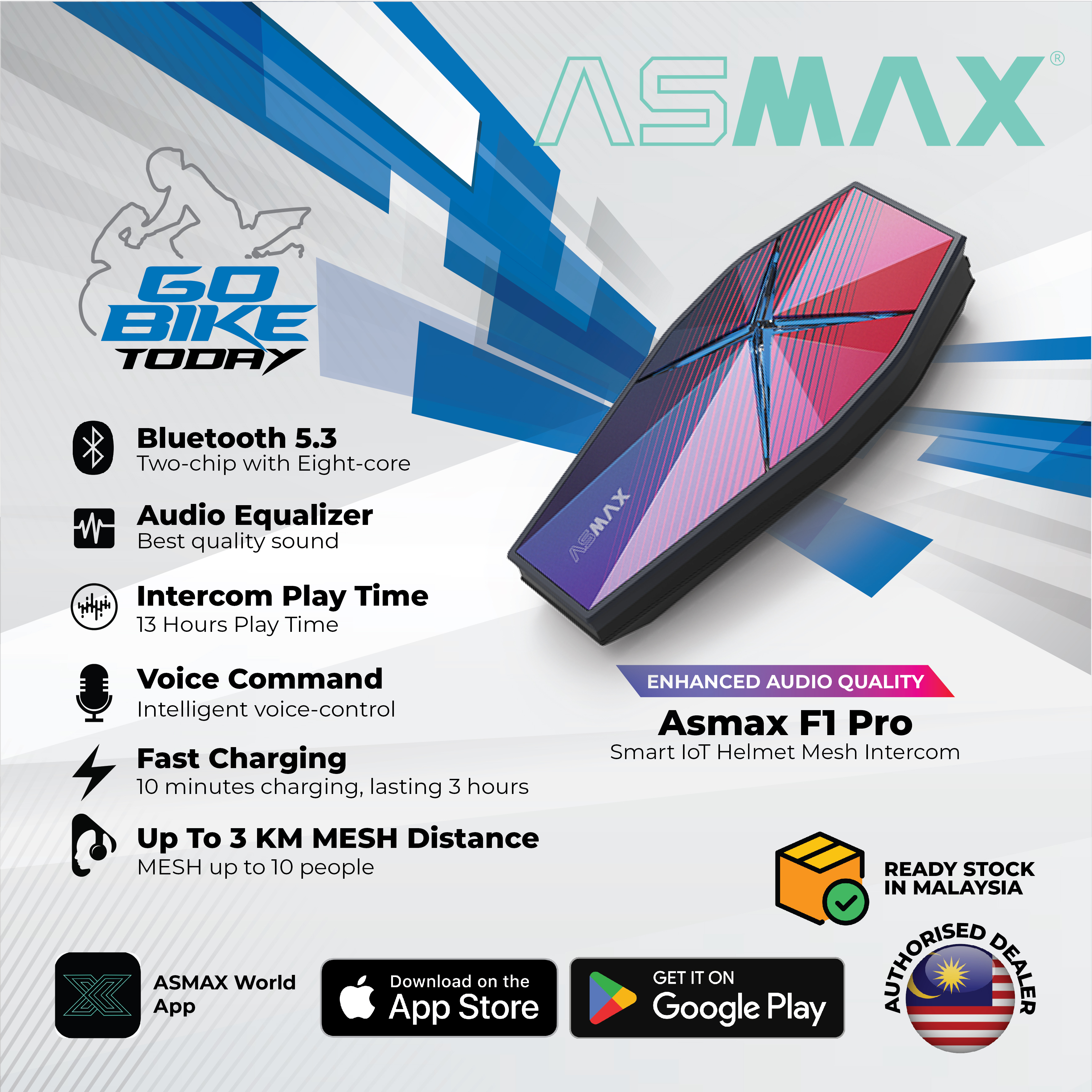 ASMAX MESH DEVICE HELMET INTERCOM - F1 PRO [MCMC APPROVED]